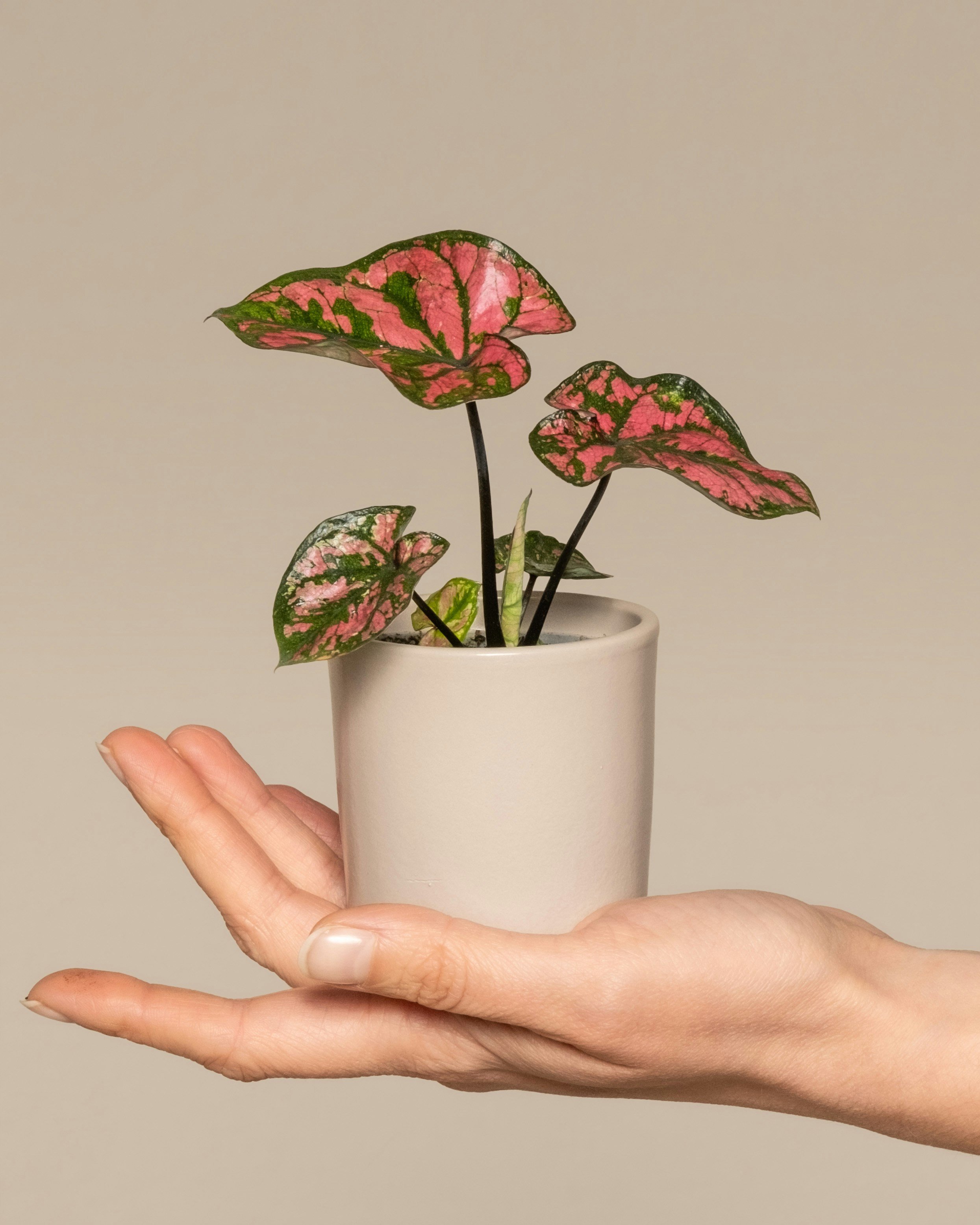 Add a splash of color to your space with the eye-catching Caladium (Caladium bicolor), also known as Angel Wings or Elephant Ears. This tropical beauty is prized for its striking, heart-shaped leaves in shades of green, white, pink, and red. Perfect for brightening up any indoor setting, the Caladium brings a lively, artistic touch to your home or office.